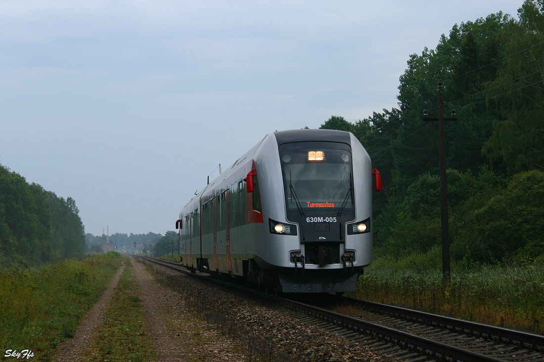 Diesel train PESA 630M-005 on the route Turmantas - Vilnius, Utena County, Lithuania (03.08.2014)