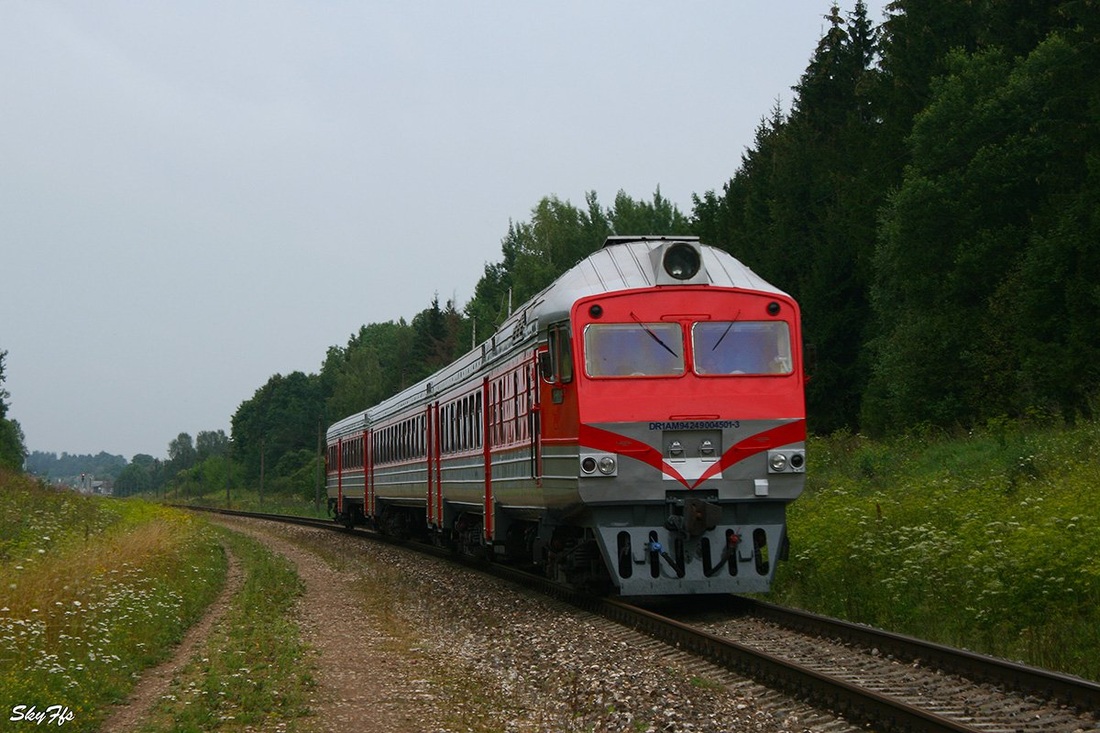 Diesel train DR1AM-450 on the route Vilnius - Turmantas, Utena County, Lithuania (03.08.2014)