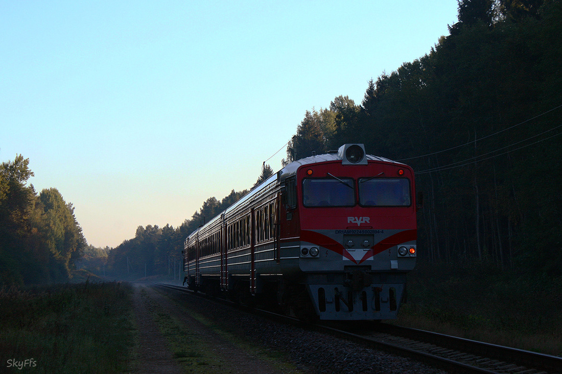 Diesel train DR1AM-289 on the route Vilnius - Turmantas, Utena County, Lithuania (02.09.2014)