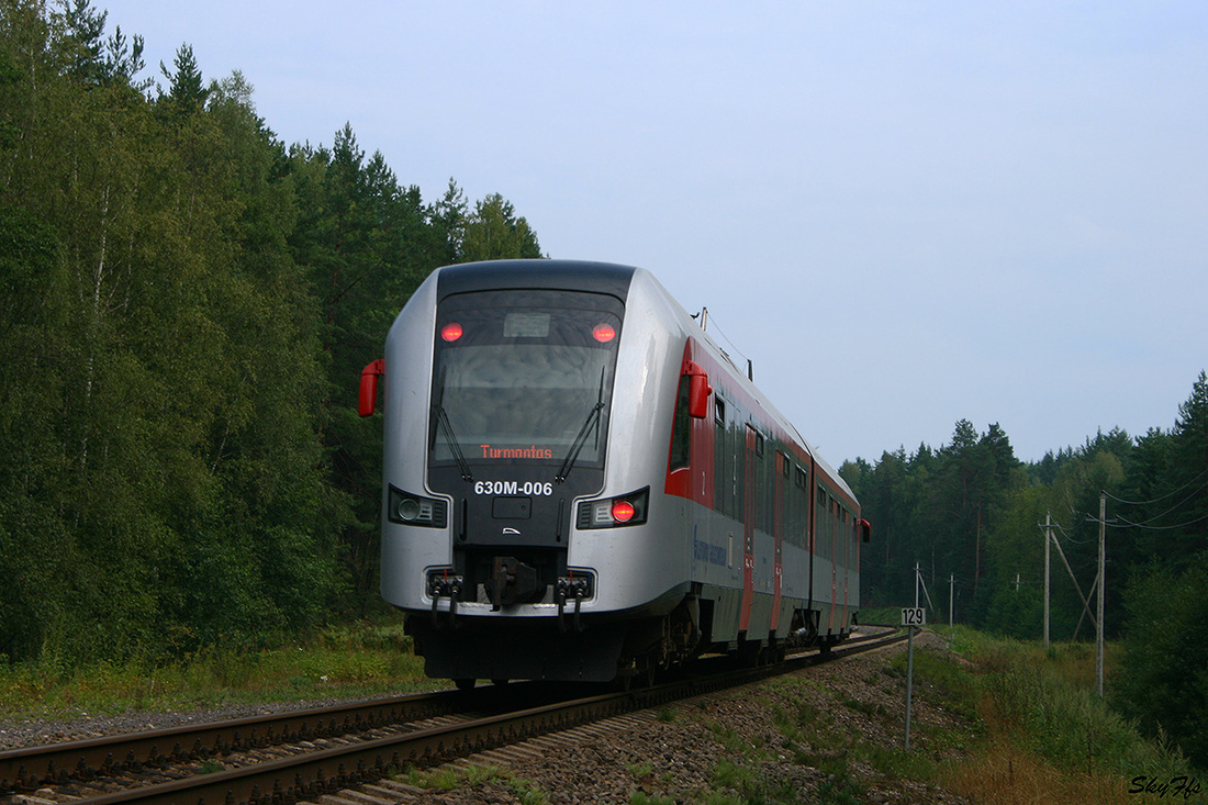 Diesel train PESA 630M-006 on the route Vilnius - Turmantas, Utena County, Lithuania (02.09.2014)