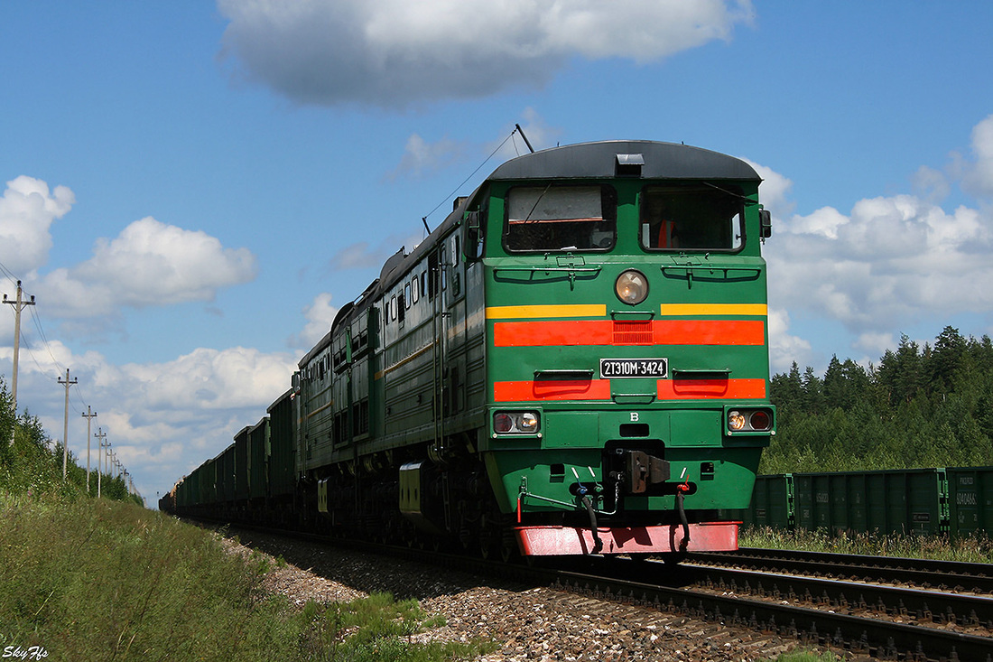 Freight diesel locomotive 2TE10M-3424, Daugavpils, Latvia (29.07.2014)