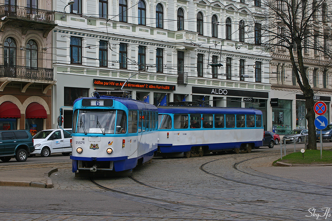 Tatra T3A Tram on the route №6, Riga, Latvia (12.04.2015)