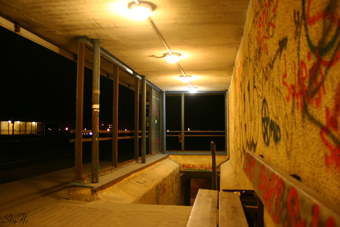 Bus stop on cold Spring night, Ikskile, Latvia (12.04.2015)