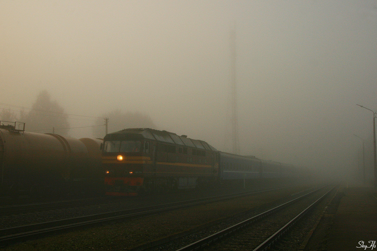 Diesel locomotive TEP70-0267 with passenger train Minsk/St Petersburg - Riga, Livani, Latvia (0 ...