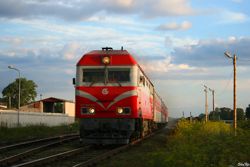 Diesel locomotive TEP70BS-004 with passenger train St. Petersburg - Vilnius, Daugavpils, Latvia ...