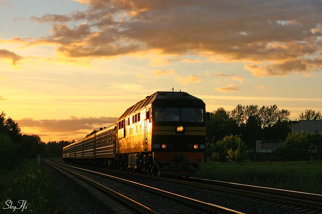 Diesel locomotive TEP70-0234 with passenger train Riga - Minsk/St. Petersburg, Daugavpils, Latv ...