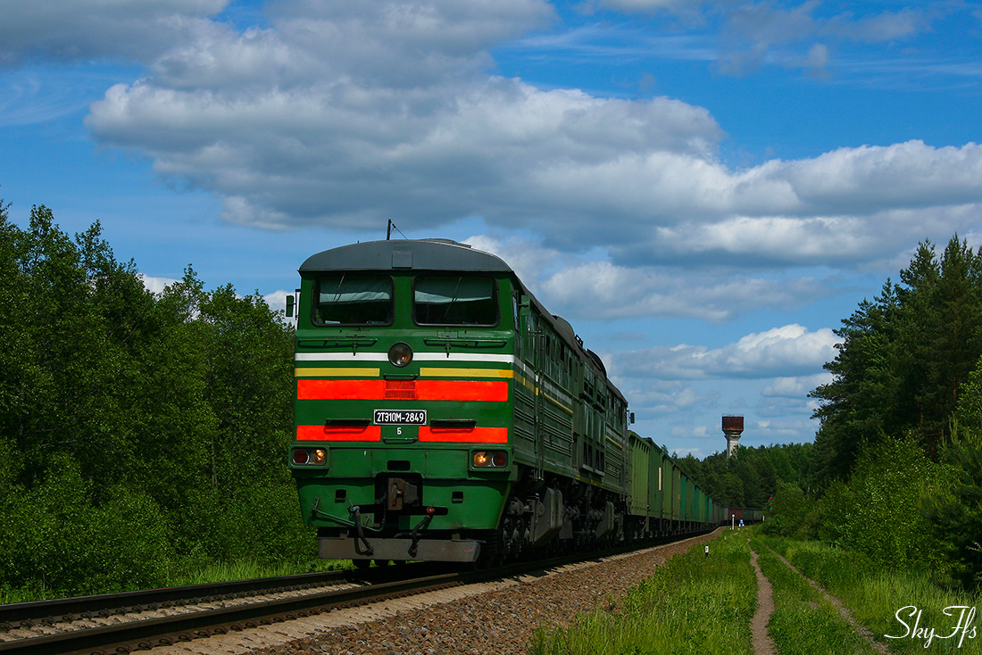 Freight diesel locomotive 2TE10M-2849, Daugavpils Municipality, Latvia (14.08.2015)