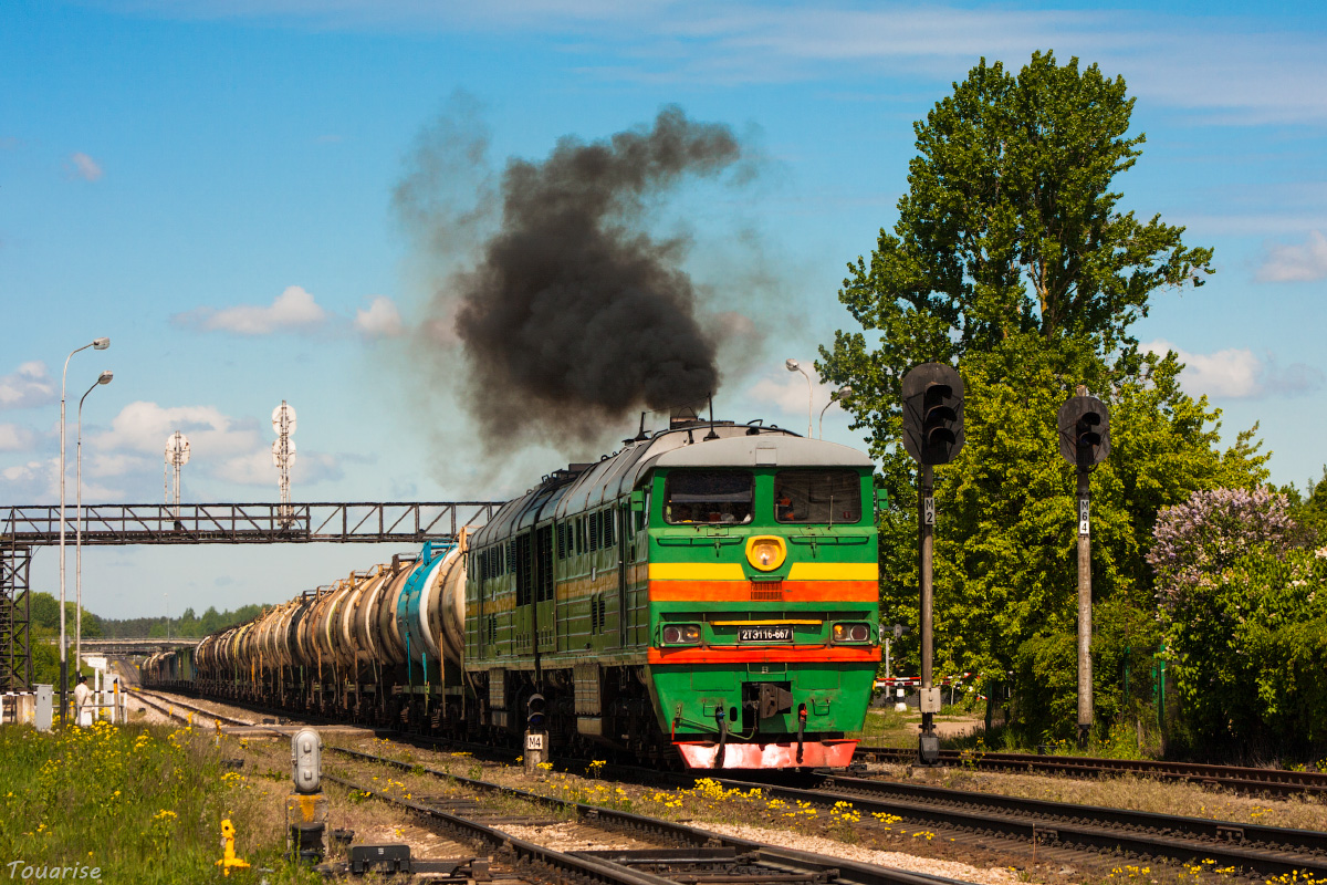 Freight diesel train 2TE116, Daugavpils, Latvia (22.05.2016)
